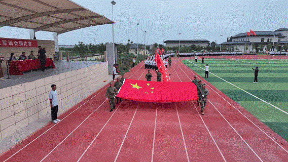升国旗,奏国歌,国旗护卫队昂首挺胸,步伐铿锵,英姿飒爽。接着,伴随激昂的《中国人民解放军进行曲》响起,军训汇演正式拉开帷幕。总教官武安杰一声令下,国旗护卫队、校旗护卫队、各班方阵迈着整齐划一的步伐依次入场。同学们身姿挺拔、目光坚定,方阵如松似竹,踏步声、口号声响彻云霄,每一步都彰显着新时代少年的蓬勃朝气。