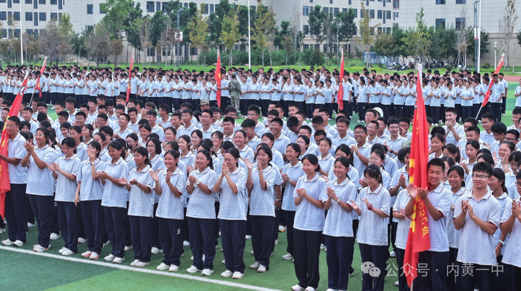 杨书记提出期盼,希望学子们厚植爱党爱国情怀,强健体魄,以团结为基、自律为梯,自立自强,在未来的道路上勇往直前,在学习中传承发扬,于奋斗中淬炼品格。最后,带领全体学生向默默支持的父母致以崇高敬意,也向永不言弃的自己表达深深敬意,号召大家以军训精神为指引,携手同心,共赴青春的壮阔航程,续写内黄一中新的辉煌篇章!