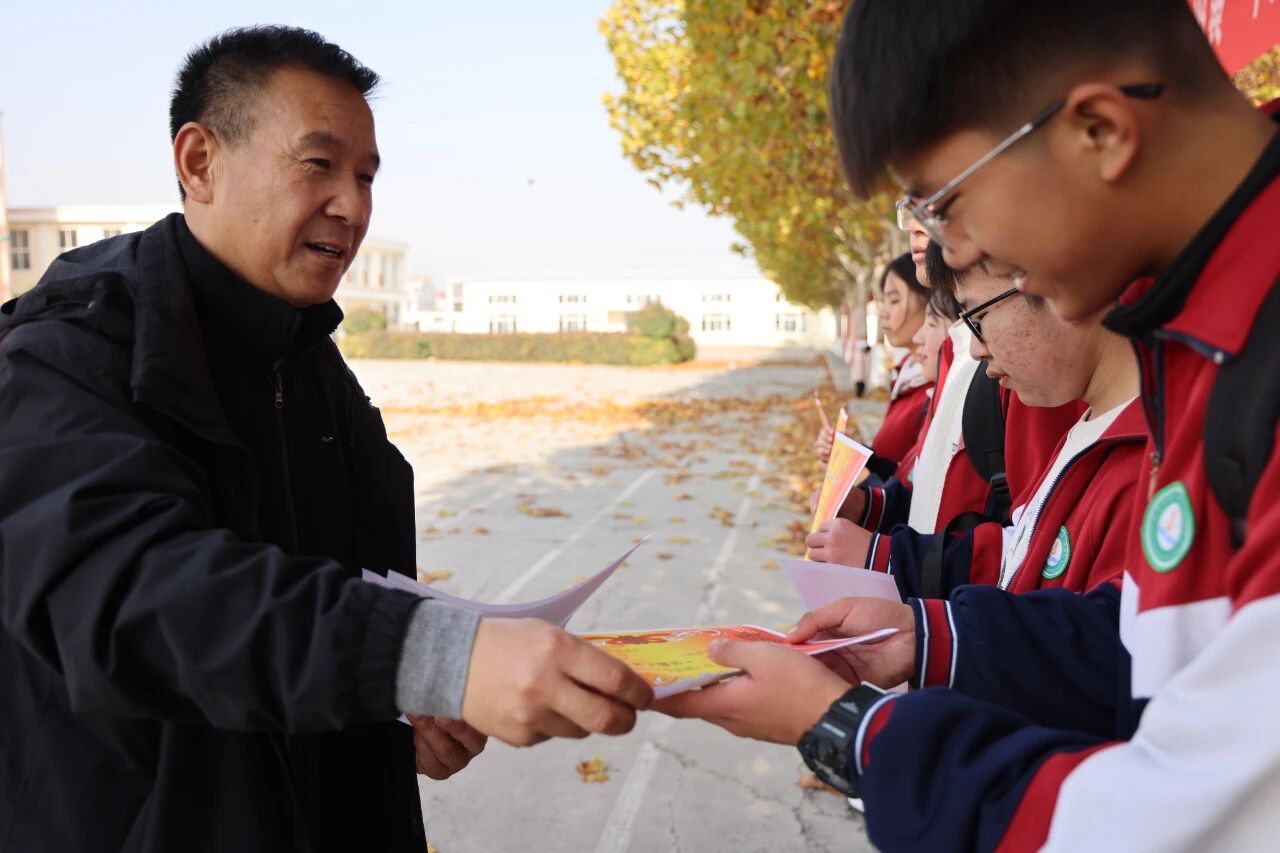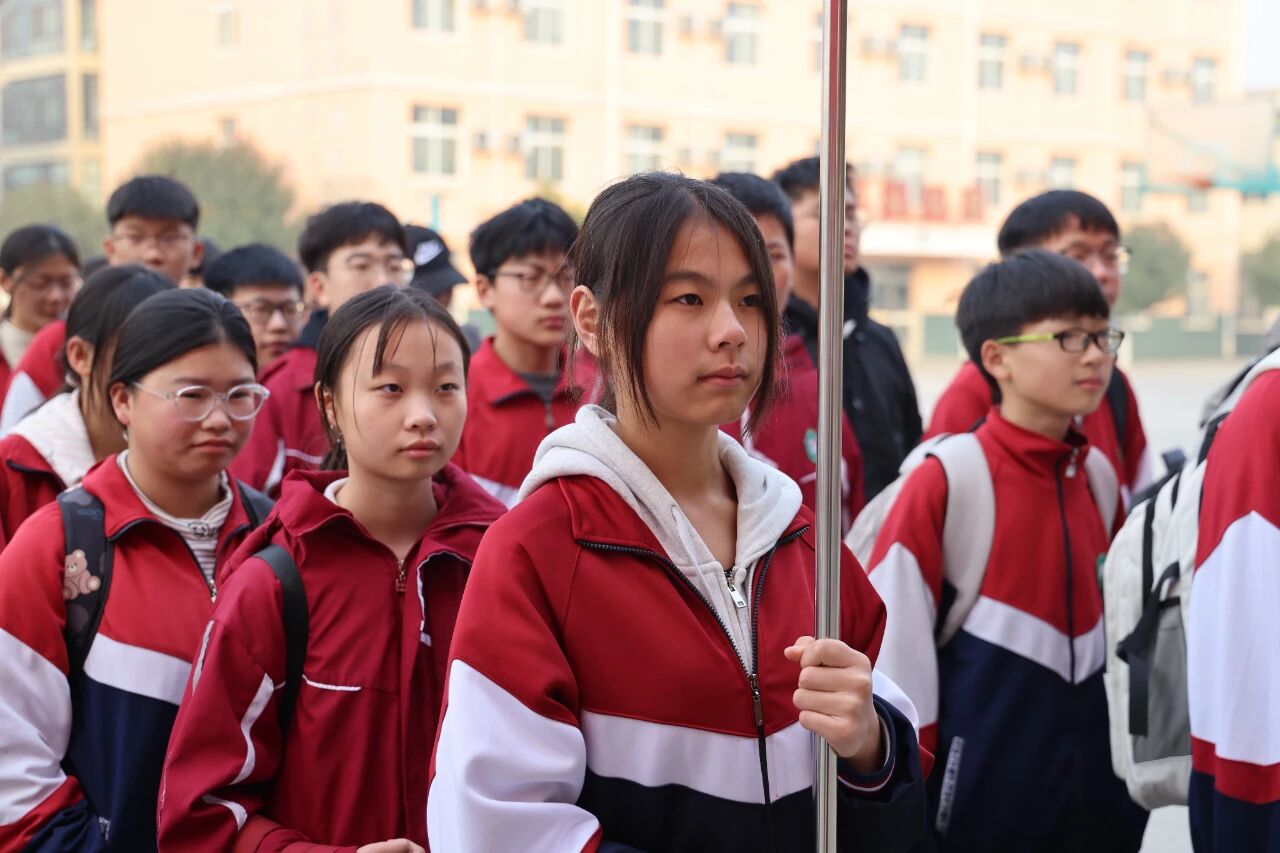 11月16日清晨,内黄一中附属初中操场上红旗招展,百余名师生与家长志愿者齐聚一堂,共同开启“师生践行‘五育并举’ 用脚步丈量青春力量”主题实践活动。