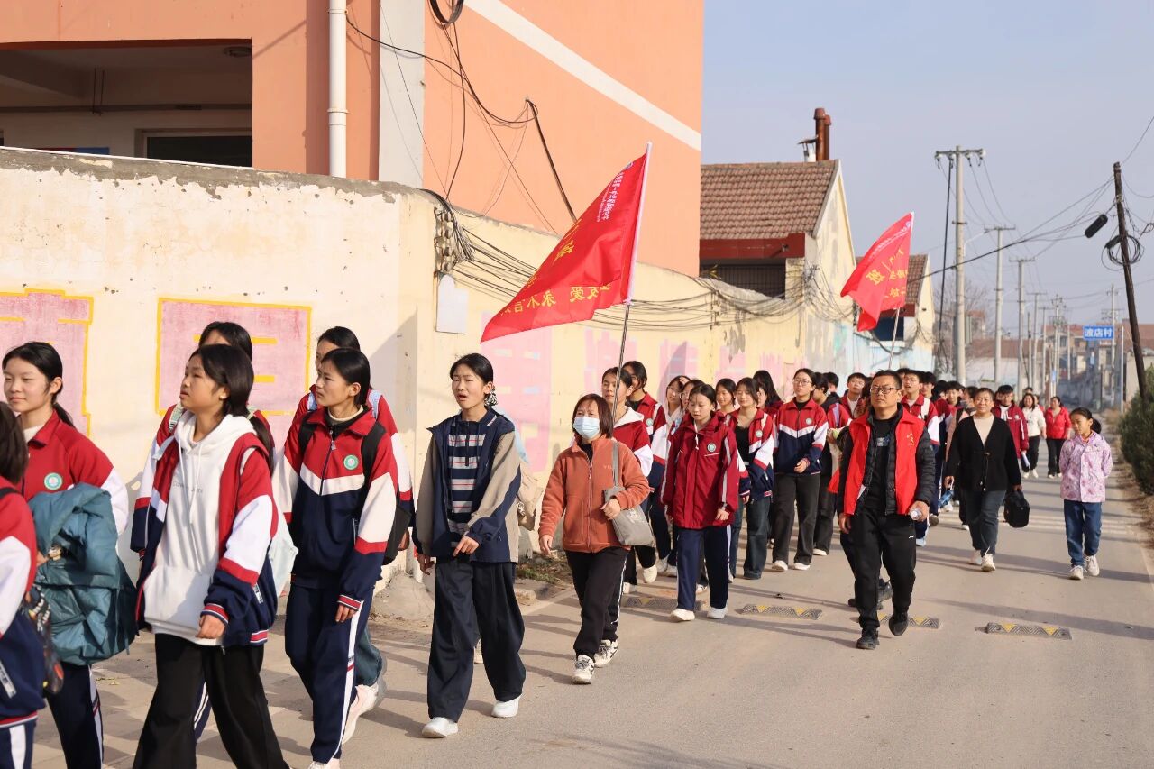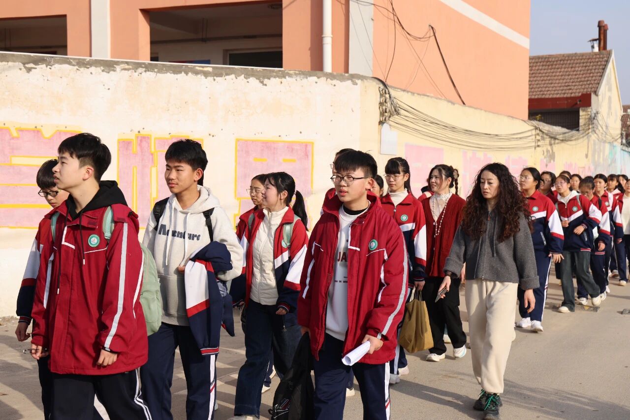 徒步途中,师生们还参观了东庄镇凡村名人故居、孝道文化墙和革命烈士纪念碑等红色文化地标。参观过程中,翔实的文字记载,让同学们深刻感受到家乡的文化底蕴;在孝道文化墙上,一个个感人至深的故事传递着尊老爱幼的传统美德,激发了学生们内心的道德共鸣;