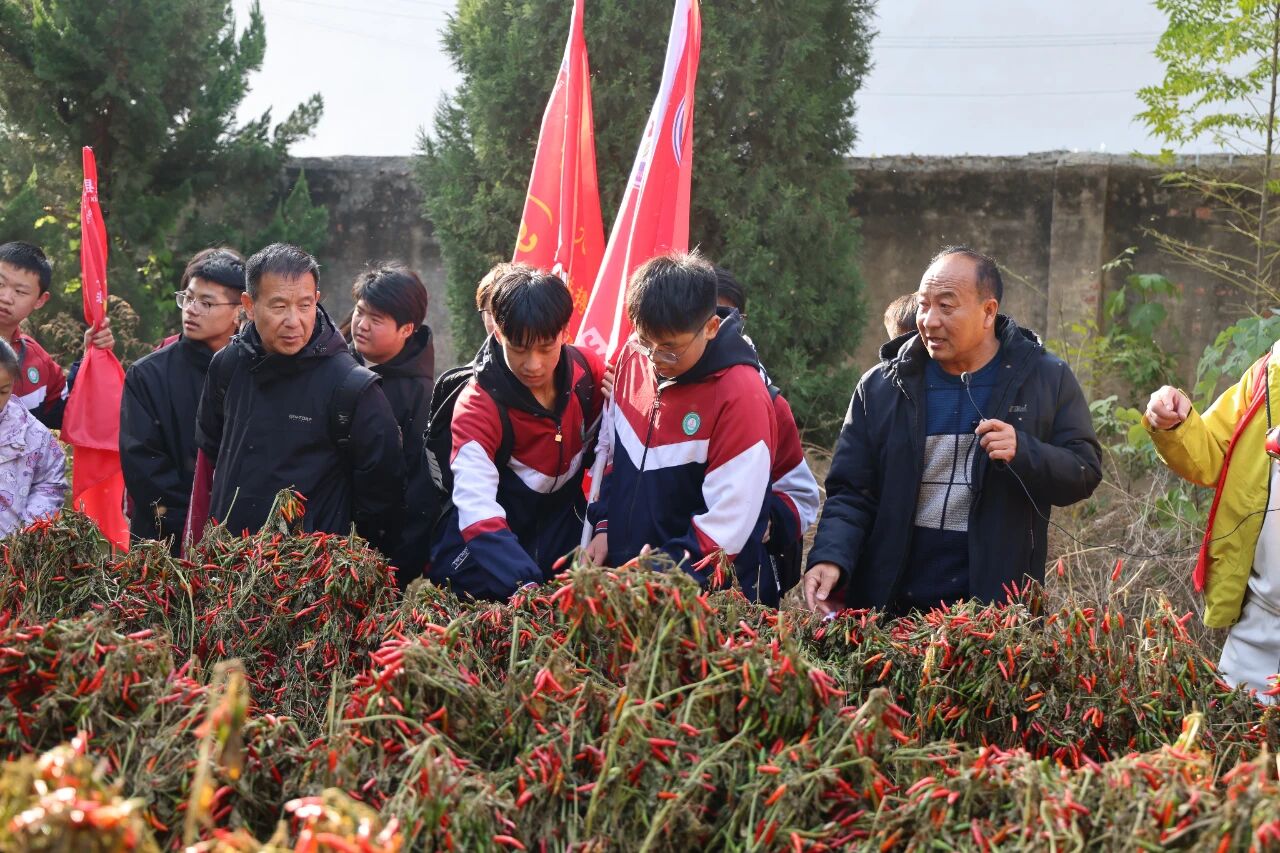 8时30分,队伍如长龙般蜿蜒出发。全程9公里被科学划分为三段。前2公里,热身启航:教师团队领跑示范,同步讲解徒步技巧与呼吸节奏。体弱学生在护队教师带领下坚持前行,额头沁汗却眼神坚毅。中6公里,自然探秘:沿途设“植物观察站”,学生们俯身辨识辣椒等植物,生物老师现场科普生态知识。同学们听得认真,记得仔细。末1公里,竞速冲刺:班级分组展开“坚韧之星”竞速赛,前三名班级率先冲过终点线。当最后一名同学跨过计时带时,全场爆发出热烈掌声——他虽气喘吁吁,却高声呐喊:“我做到了!我能行!”